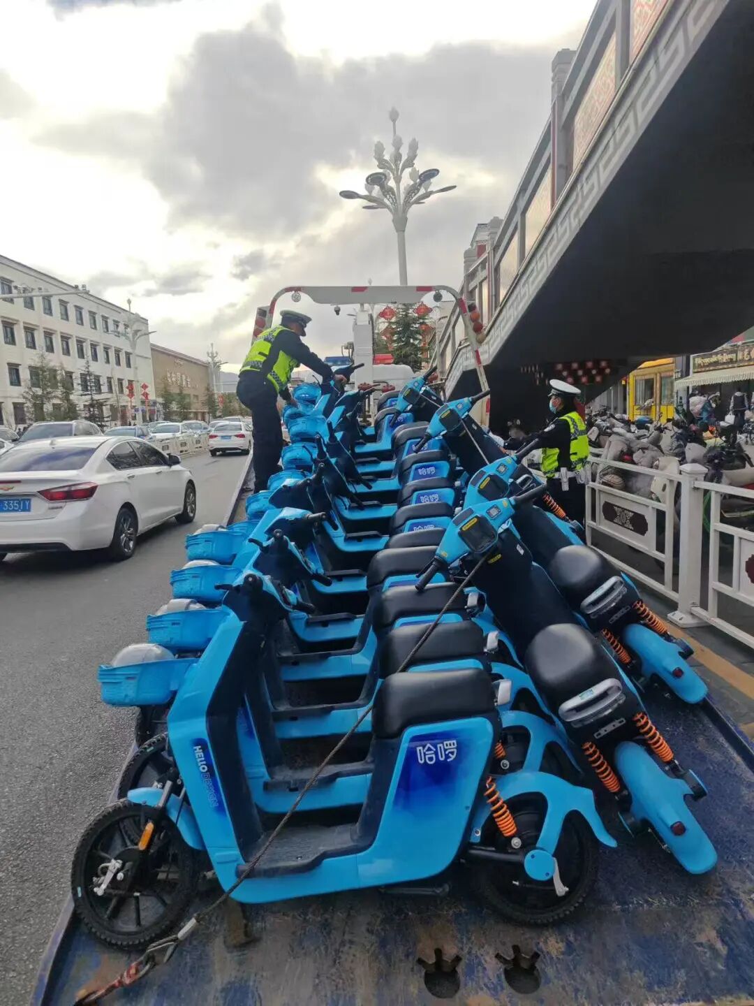共享出行便民利民,安全运行筑牢底线。为持续加强电动自行车源头管控,整治无牌共享电单车上路乱象,切实维护辖区道路通行秩序,近日,拉萨市公安局交通管理支队城东大队对北京东路哈啰单车开展集中托运清理行动,精准封堵无牌共享电单车上路风险,守护群众出行安全。