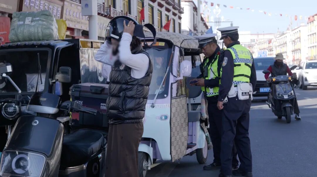 整治活动中,拉萨交警聚焦三轮车无牌无证、占道经营、违法载人等突出问题,以“定点设卡+流动巡查”模式开展现场执法,对过往三轮车逐一核查牌证资质,耐心向驾驶人讲解违法危害,做到“查处一起、教育一起”,推动整治工作“执法+宣传”同步落地。针对三轮车违法易反弹特点,加密重点路段巡查频次,做到“见警车、见警灯、见民警”,在查处交通违法行为的同时,耐心向群众宣讲驾驶证申领和机动车登记注册规定。