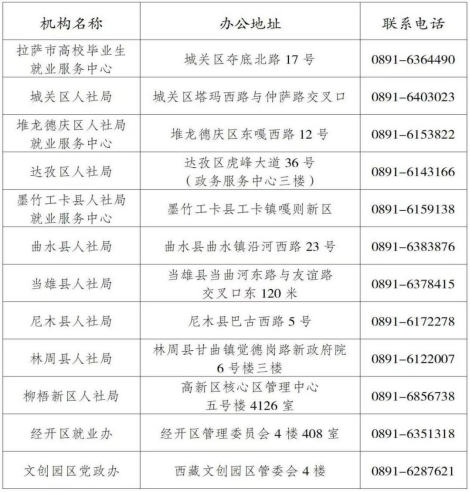 四、拉萨市各级公共就业服务机构清单及联系方式