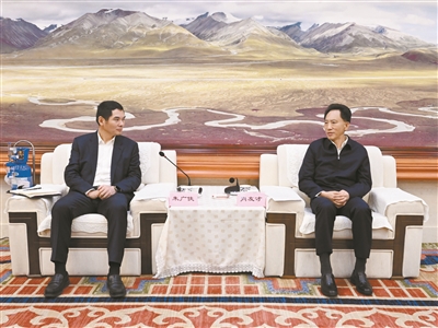 近日,自治区党委常委、拉萨市委书记肖友才与中国中冶党委常委、副总裁朱广侠一行座谈。图为座谈现场。 拉萨融媒记者 巴桑次仁摄