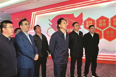 6日,自治区党委常委、拉萨市委书记肖友才深入堆龙德庆区调研并宣讲党的二十届四中全会精神。这是肖友才在堆龙德庆区党员干部政治体检中心参观展览。 拉萨融媒记者 巴桑次仁摄