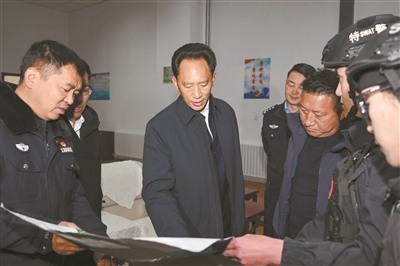 1月9日上午,在第六个中国人民警察节来临之际,自治区党委常委、拉萨市委书记肖友才在市公安局特警支队慰问调研。这是肖友才详细了解支队装备建设、日常训练、队伍管理等情况。拉萨融媒记者 玉珠多杰摄