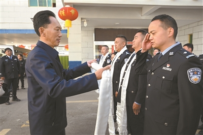在拉萨市公安局经侦支队、环食药支队,肖友才向整齐列队、精神饱满的民警们献上洁白哈达,对过去一年打击经济犯罪、守护绿水青山、捍卫舌尖安全等方面取得的成绩给予充分肯定,向大家的辛勤付出表示衷心感谢。指出,经侦支队和环食药支队一头连着经济发展的“大动脉”,一头系着百姓生活的“烟火气”。要坚守为民初心,继续发扬敢于担当、连续作战的优良作风,加强案件侦办,深化科技赋能,规范执法行为,全力锻造忠诚干净担当、自身素质过硬的铁军,全力护航长治久安和高质量发展。