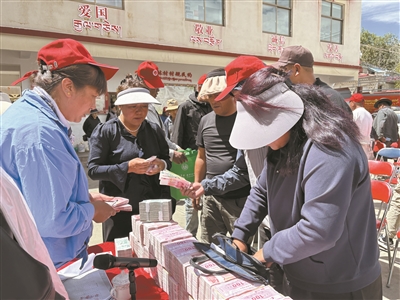 图为发放仪式现场,村民开心拿回欠款。拉萨融媒记者莫瑞英摄