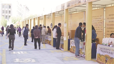 图为塔玛街道塔玛村新世界广场的分会场,市民在展位前挑选采购。拉萨融媒记者次仁卓玛摄