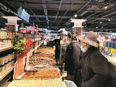 记者在超市看到,老人们在仔细阅读立减规则,互相交流选购计划,时不时拿出手机向工作人员确认优惠细节。货架旁,老人们放慢脚步认真挑选商品,秋冬保暖的衣物、实用的家居用品、新鲜的牛羊肉、蔬菜、水果……不一会儿购物车就被填满。