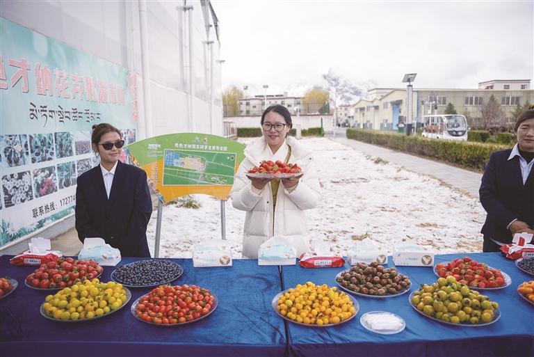 花卉种植基地智能化温室大棚培育的水果。文/记者 谭瑞华 图/记者 阿旺尼玛