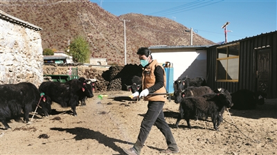 记者在墨竹工卡县工卡镇格桑村村民家中看到,在牲畜圈舍前,防疫人员严格遵循动物防疫操作规范,有条不紊地开展工作:首先对圈舍内外进行全面消毒,随后逐一对牛、羊等牲畜进行免疫注射,并仔细核对牲畜信息、登记疫苗种类与接种时间,确保每一头(只)牲畜“应免尽免、不留死角”。现场操作规范有序,村民们积极配合,对防疫人员上门服务的贴心举措表示认可。