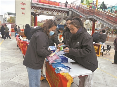 图为活动现场,工作人员向过往市民普及国家安全知识。 拉萨融媒记者 仁青拉姆摄