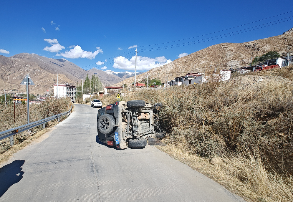 2025年9月14日3时54分,旦某盗开停放在娘热街道的藏A82***号车,沿拉萨市东环线由东向西行驶,当行驶至纳金路时与道路人行道树木发生碰撞,致使自身及3名乘车人受伤。