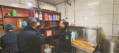 图为检查活动现场,工作人员向经营商户普及瓶装液化气规范使用及风险防范知识。 拉萨融媒记者 次 珍摄