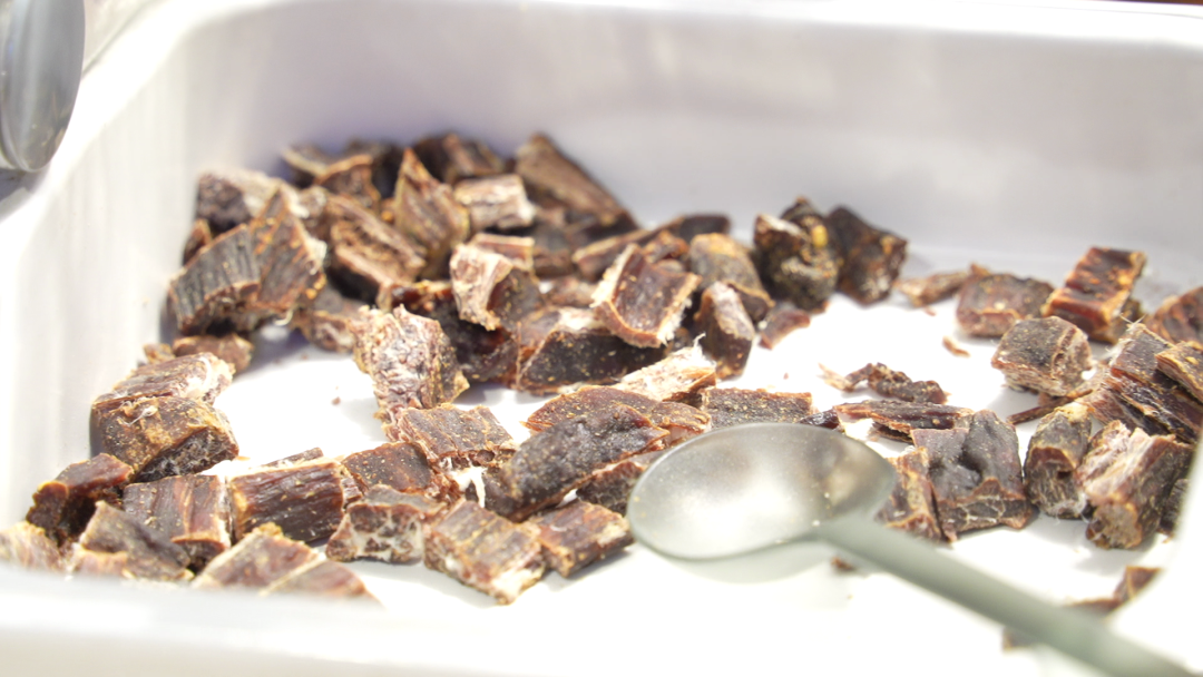 一看色泽,正宗牦牛牛肉干呈自然的暗红色或深褐色,肉质紧实。如果颜色特别鲜艳、红得发亮,要当心可能添加了人工色素。