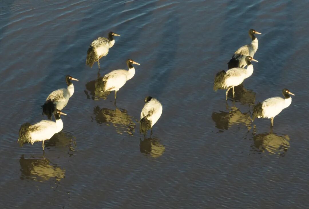 目前,在拉萨越冬的黑颈鹤约有4000余只,占全球黑颈鹤总数的20%左右。它们不仅是生物多样性的生动体现,更成为拉萨重要的生态文化符号。近年来,随着拉萨生态环境持续向好,黑颈鹤种群数量稳步增长,与这座城市的联结也愈发紧密。