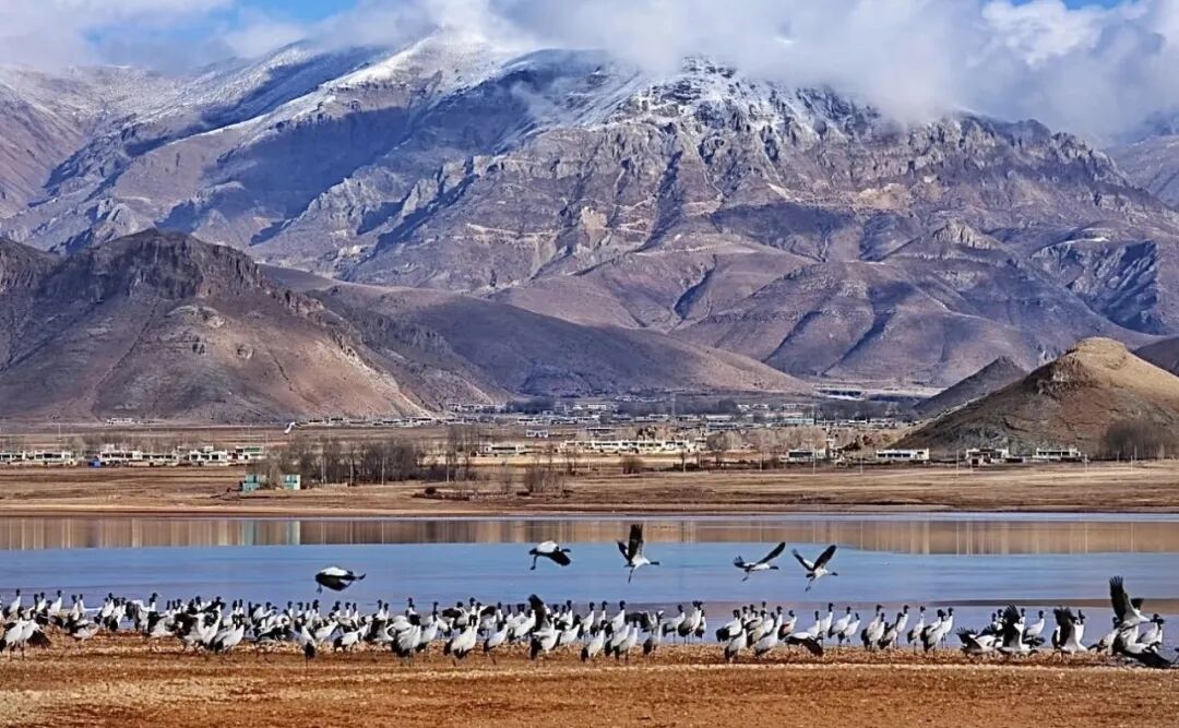 静观勿扰,与自然共鸣,若你想一睹黑颈鹤的优雅风采,可前往林周县虎头山水库周边、达孜区河谷农田区域等地,探寻它们在田间地头的身影。记得保持安静、远观为佳,避免惊扰它们。