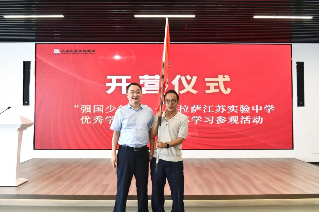 凤凰出版传媒集团副总经理单翔向拉萨江苏实验中学团队领队授旗
