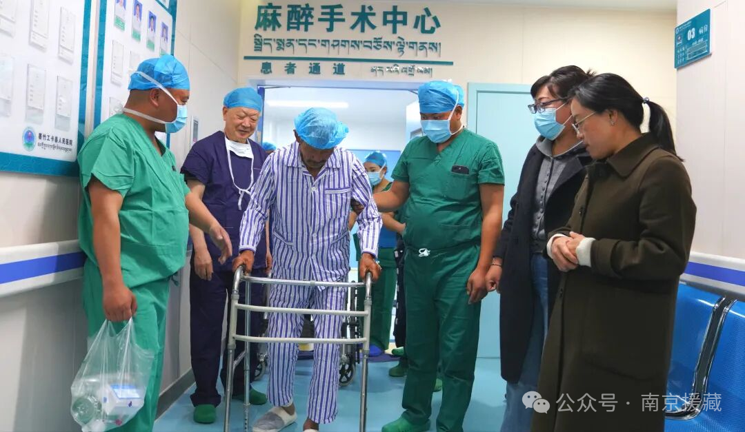 4 月 11 日,67 岁的尼木县患者扎西(化名)在江苏援藏医疗队的精心诊疗与全力救治下,成功在墨竹工卡县人民医院接受右侧髋膝关节置换手术。手术过程采用选择性神经阻滞、区域神经阻滞等综合麻醉镇痛方案,实施个性化麻醉,并全程控制性降压、采用无止血带操作技术,为患者快速康复与良好预后奠定坚实基础。麻醉醒复后,扎西便能在医护人员陪同下,自主步行走出手术室,家属倍感惊喜与安心。