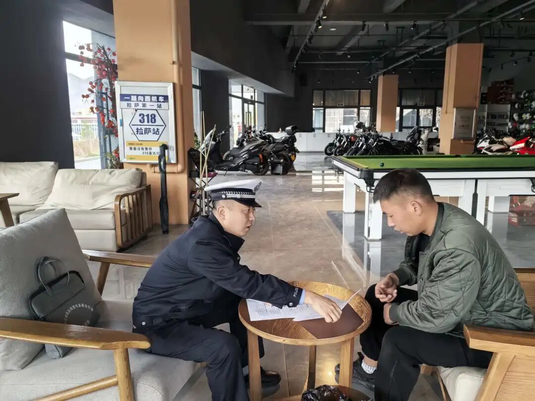 重拳整治“飙车炸街”,源头治理是关键。为有效遏制“飙车炸街”交通违法行为,从根源消除道路交通安全隐患,4月15日,拉萨市公安局交通管理支队柳梧大队深入辖区摩托车销售店,开展专项摸排调查工作,严堵非法改装、违规租赁行业漏洞,精准发力斩断风险链条。