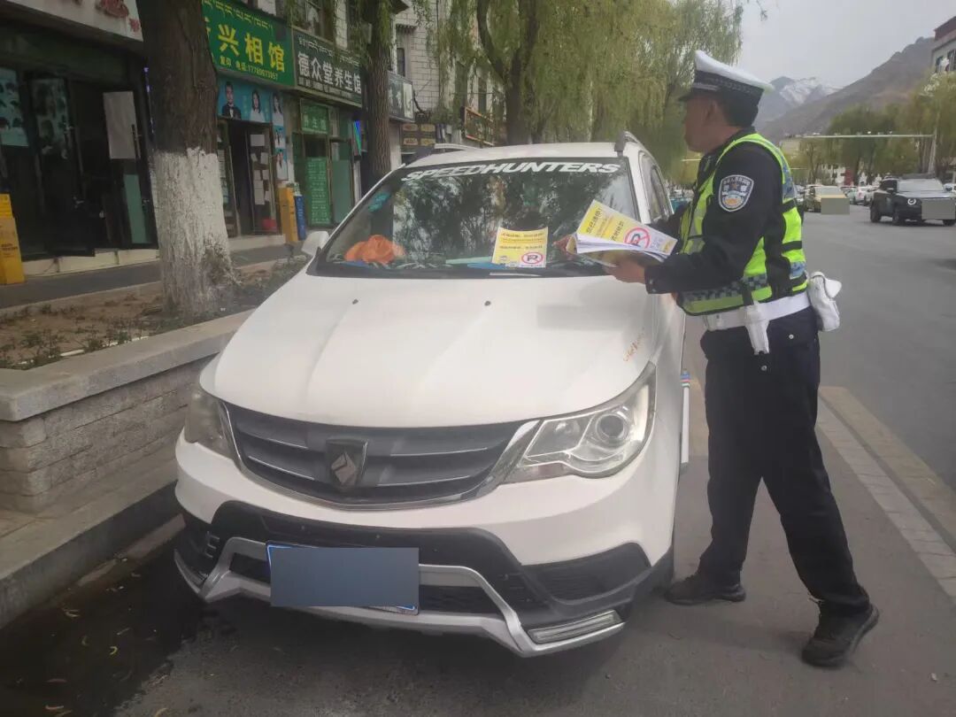 近日,拉萨市公安局交通管理支队城南大队针对江苏东路限时车位使用乱象,开展文明停车宣传劝导工作,通过柔性执法规范路段通行秩序,消除交通安全隐患。