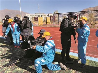 图为学生们拿起模拟枪械,过了一把“小特警”瘾。拉萨融媒记者 莫瑞英摄