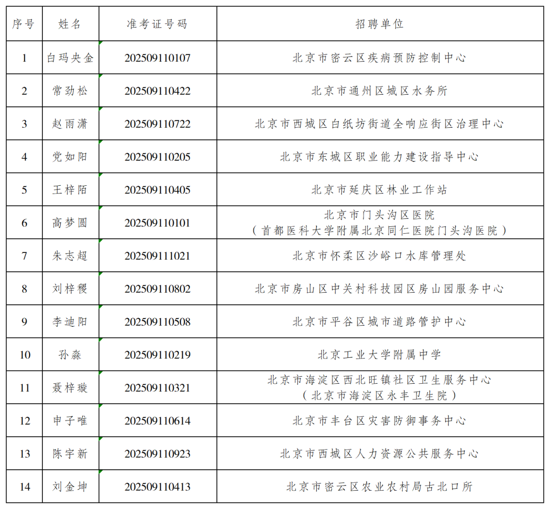 根据《关于2025年北京市事业单位就业援藏专项招聘公告》要求,经报名、笔试、面试、体检、考察、政审等工作程序,现将拟聘用人员名单予以公示(公示期5个工作日,2025年11月17日—11月21日)。