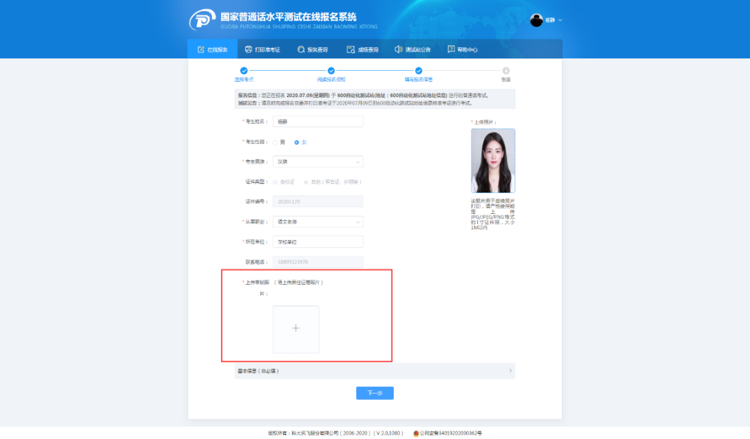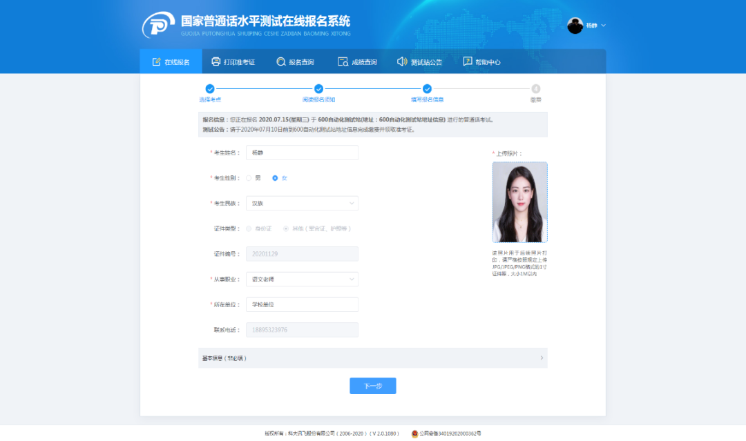 考生姓名、考生性别、考生民族、证件类型、证件编号、从事职业、所在单位、联系电话、证件照系统自动带入个人中心中的信息,证件类型、证件编号、手机号不可修改;其他信息请如实填写。