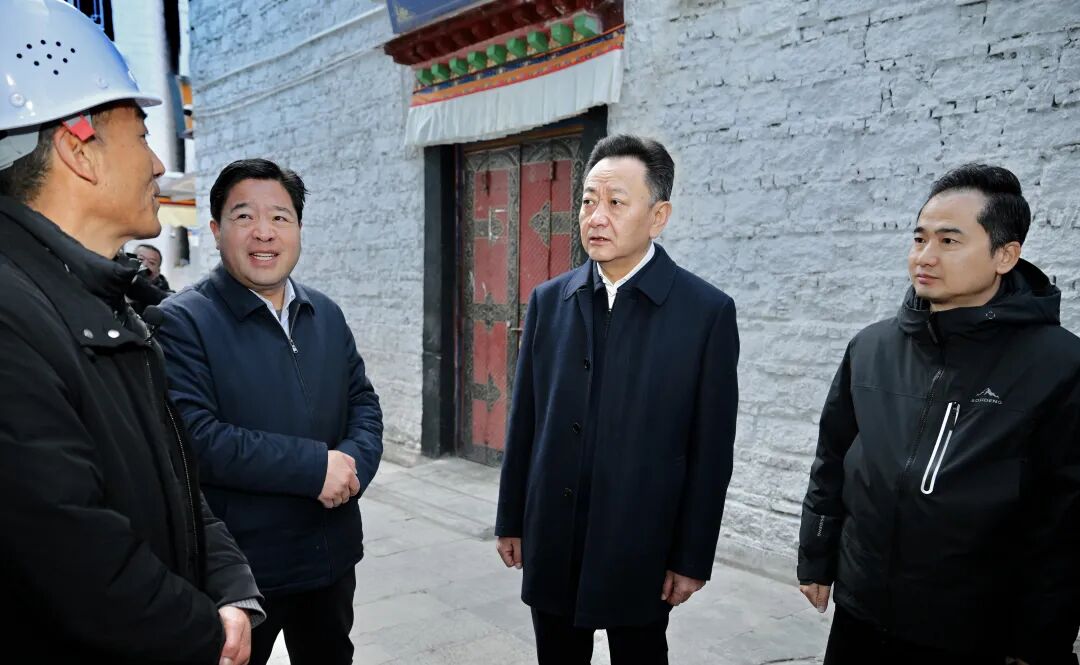 达娃次仁先后来到喜德寺大院、格林夏居民大院和基础设施施工现场,实地了解文物保护修缮、传统风貌保护、基础设施提升等情况。强调,各级各有关部门要提高站位、领会精神,学懂弄通做实习近平总书记关于城市工作和文化遗产保护传承的重要论述,认真按照自治区党委工作部署和王君正书记指示要求,站在对历史负责、对城市负责、对人民负责的高度,精心组织、依法依规实施好八廓古城保护与旧城改造提升工程。要把握原则、遵循规律,坚持“最小干预、古今交融”理念和“保护为主、修旧如旧”原则,强化科学化规划和现代化治理,严格规划实施管理,更好统筹地上和地下,确保既管好城市的“面子”、更建好城市的“里子”。要突出特色、彰显文化,坚持创造性转化、创新性发展,注重历史文化传承保护与时代精神相结合,注重中华民族共同体符号表达与古城文化特色相结合,延续城市文脉、留住城市记忆、塑造城市精神,构筑中华民族共有精神文化家园。要补齐短板、改善民生,坚持以人民为中心的发展思想,不断提升基础设施和公共服务设施供给水平,让古城保护与旧城改造提升成果更多更好惠及各族群众。