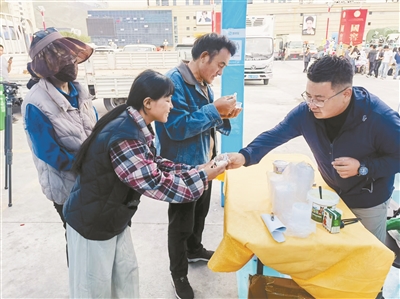 图为在以“高原奶香·酸奶盛宴”为主题的奶制品展销会上,市民正品尝、购买特色奶制品。拉萨融媒记者杨 璐 摄