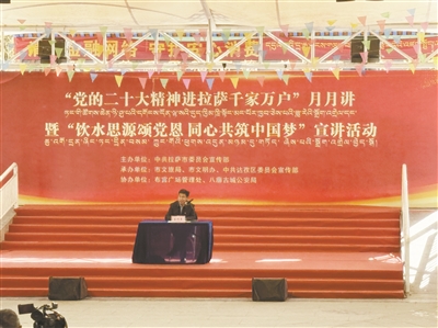 拉萨融媒讯(记者乔梁)3月20日上午,由市委宣传部联合相关单位举办的“党的二十大精神进拉萨千家万户”月月讲暨“饮水思源颂党恩 同心共筑中国梦”宣讲活动在宗角禄康公园举行。