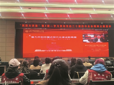 拉萨融媒讯(记者次仁卓玛)10月30日下午,城关区八一街道当热社区作为共建单位,组织干部职工代表参加自治区民政厅举办的学习贯彻党的二十届四中全会精神主题宣讲会,以精准学习推动全会精神在基层落地生根。