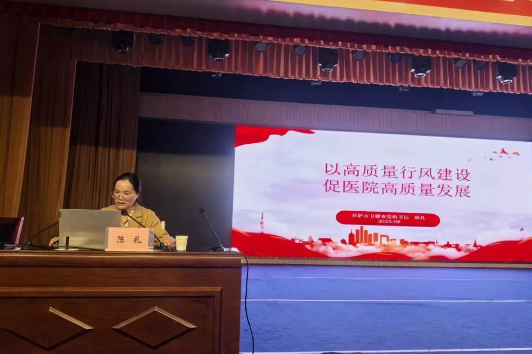 会议伊始,市卫健委党组书记陈礼同志围绕加强医疗卫生行业作风建设,从“医院行风制度体系建设、医疗机构行风建设的拉萨实践、医疗机构行风建设的几点思考”三个方面作了专题培训,强调了新形势下持续深化医德医风建设、提升医疗服务质量的重要性与紧迫性,为全市医疗卫生工作者进一步规范执业行为、强化服务意识指明了方向。陈礼同志强调,医德医风建设必须要以“人员有活力、治理有成效、群众有获得”的实践,为行业塑形、为群众保利,才能书写医疗事业高质量发展的新篇章。![]()